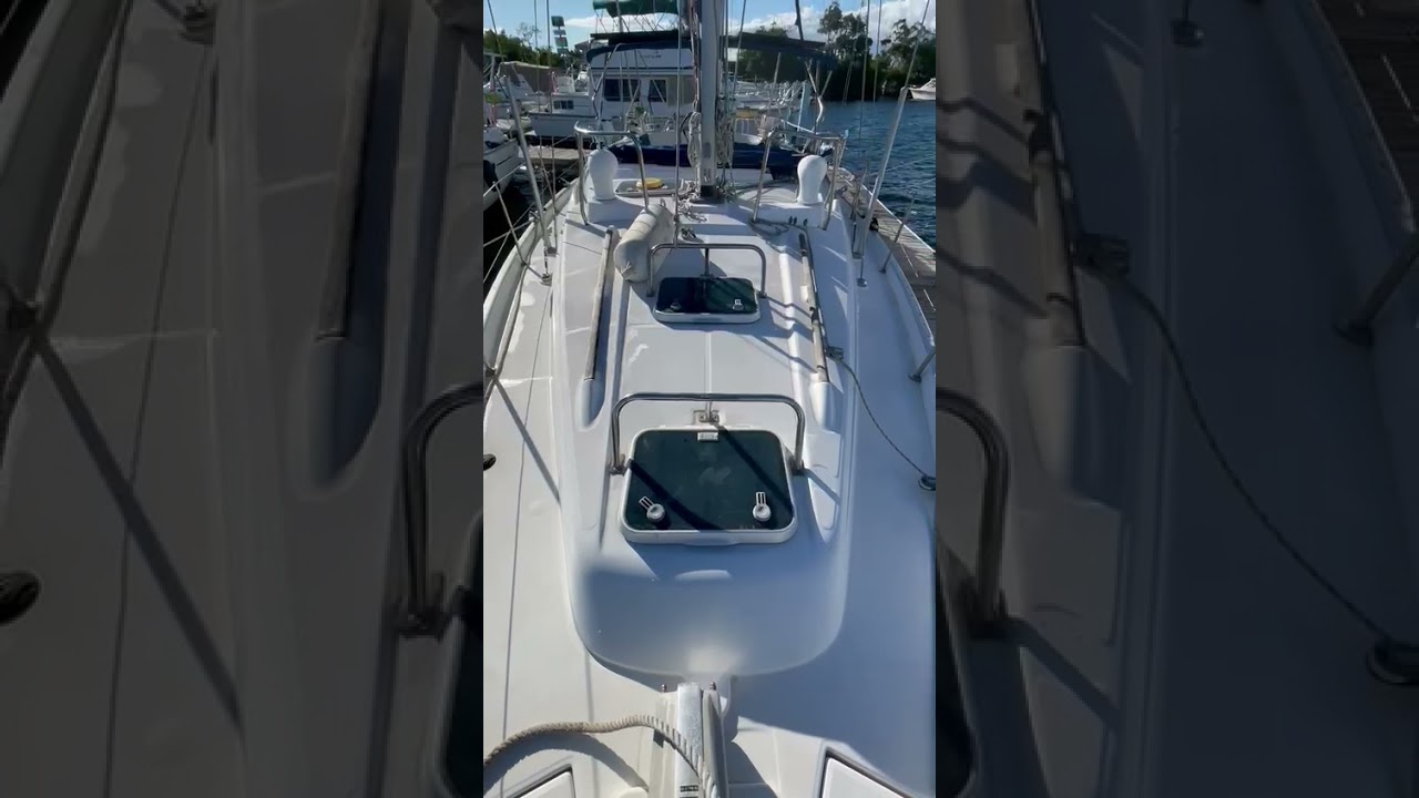 The specification for the Oceanis 40CC: the design of an ideal long-distance cruising yacht for a couple, but with the capability of accommodating four or five people in the greatest comfort. Being on board a powerful, reliable boat that also has high performance is an essential part of the pleasure of cruising. The Oceanis 40CC's hull is remarkable for its long waterline, big volumes and efficient wing-bulb keel. As far as her construction is concerned, there are no compromises: the structural inner moulding, glued and laminated to the hull, distributes any stresses from the rigging and keel. This technology combines reliability and strength and also provides perfectly finished locker interiors that are easy to maintain. One of the principal advantages of a central cockpit is the incomparable safety derived from the height of the cockpit, which is surrounded on all sides. There is a step of the coaming on the Oceanis 40CC to make it easier to get up the two teak-covered bench seats in the cockpit. There is a choice between a steering wheel mounted on the forward starboard bulkhead or on a pedestal in the middle of the cockpit. The helming position can be totally protected with an optional windscreen or sprayhood. Genoa and mainsail halyards and the lines for the two furlers are brought back onto powerful stoppers that free the halyard winch, whenever necessary. All handling lines are to hand. The Oceanis 40CC's deck is totally logical, simple and efficient, with steps in the transom (standard bathing ladder), liferaft fixing point on aft coachroof, solid wooden bulwark the full length of the hull, as well as a teak rubbing strake. The numerous opening hatches and Dorade vents are positioned in such a way so as not to impede movement on deck. The chainplates for the upper and lower shrouds, which are positioned right against the coachroof, also leave the side decks completely free for easy access to the foredeck for the sunbathing area and the electric windlass. In the interior, the warm atmosphere (cherry or optional teak finish) on board the Oceanis 40CC is essential to a good quality of life on board. To starboard, the saloon table and the raised settees ensure a pleasant "sea view" from inside the boat. Opposite to port, is the navigation station: chart table with stowage, bookshelves, 16-function electrical control panel, and all the room you need for on-board electronics. In the forward cabin, your guests have a large double berth, hanging locker, many other lockers and an en suite head compartment. In the passageway to port, which runs alongside the large engine compartment, the Oceanis 40CC's galley has everything you would normally find in the best-equipped kitchens: freezer, refrigerator, double stainless steel sink with hot and cold pressurised water, three-burner gimballed stove and many cupboards and drawers. As for the master cabin, all the incomparable advantages of the centre cockpit in terms of comfort and space have been fully exploited: large double berth with access from both sides, vanity-desk with mirror and lockers, large hanging lockers and your own head compartment with WC and separate shower. Call or text Salvatore for any questions; 787-590-9086