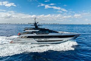The RIVA 130 Bellissima EURO represents a spectacular and distinguished example of luxury yacht construction, commissioned by a knowledgeable yachtsman and meticulously maintained by a dedicated, expert crew. Its features include a main deck master suite, four guest staterooms with private baths, a custom rosewood interior, and a unique silver and black exterior.