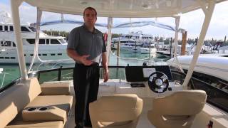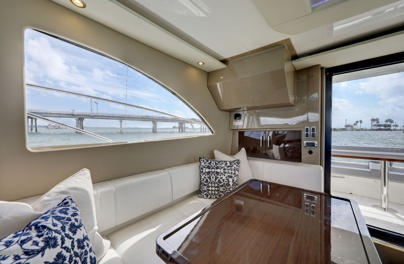 - Seating: Adjustable helm chairs. Wraparound seating with storage under seat cushions. Aft sun pad.
