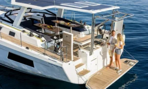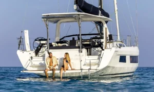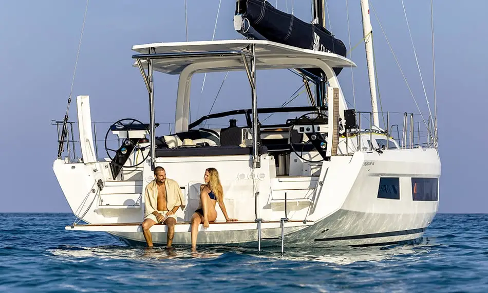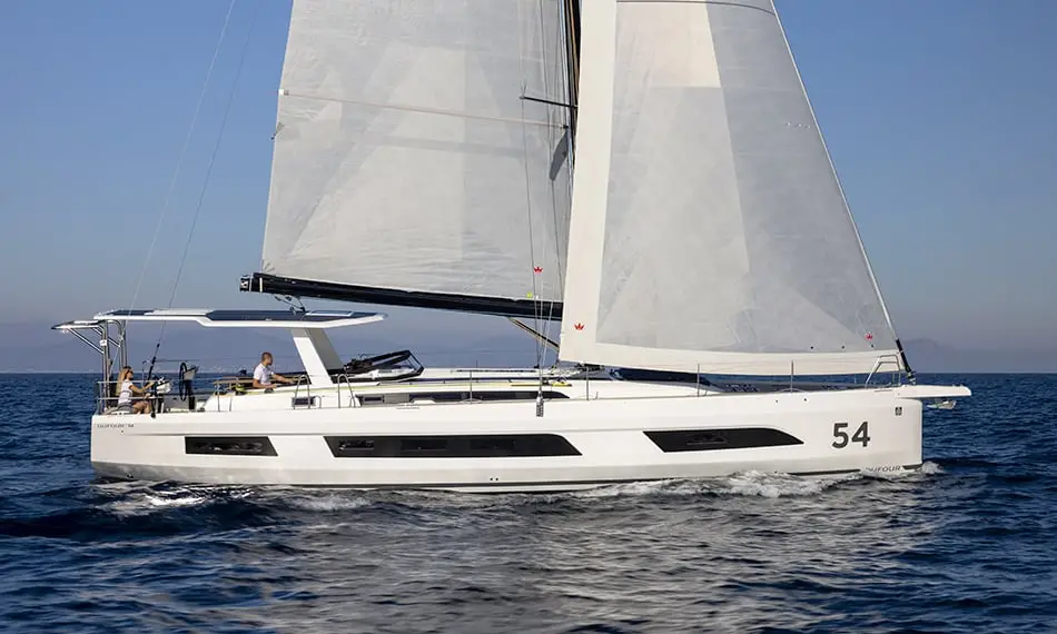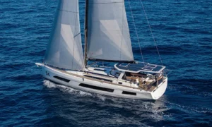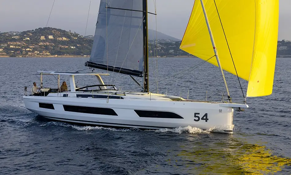 The exceptional Dufour 54 sailing boat invites you to explore the wonders of the Mediterranean, from the Italian coast to the islands of the Peloponnese, combining comfort and performance. This boat’s ease of handling and relaxation areas, such as the sunbathing areas and the aft platform, provide enjoyable and friendly sailing.