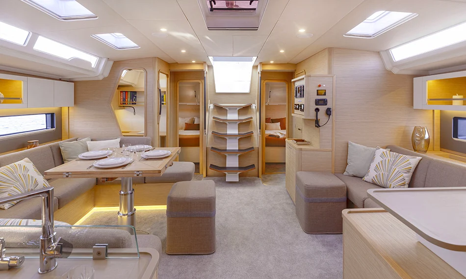 The Dufour 54 offers a wide range of interior design options. This means that each captain can choose the boat that best suits his or her needs as well as those of their crew.