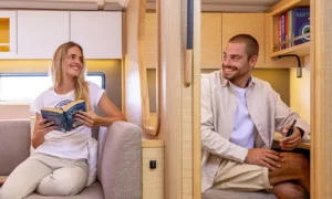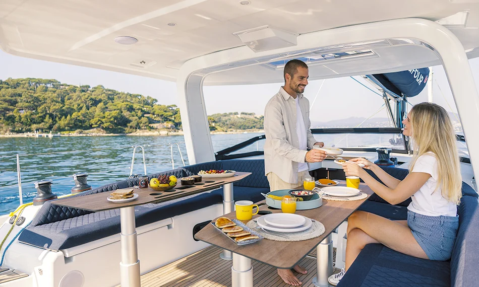 The SKY LOUNGE COCKPIT is U-shaped, guaranteeing comfort, space and conviviality. There are two elegant cockpit tables offering comfortable seating. These lower to create two sun loungers, ideal for relaxing whether under way or at anchor.