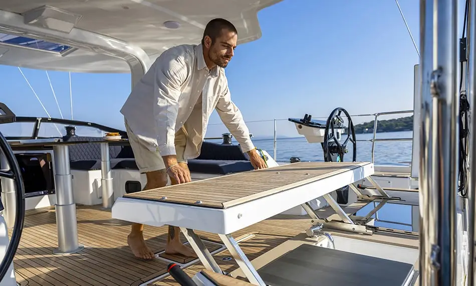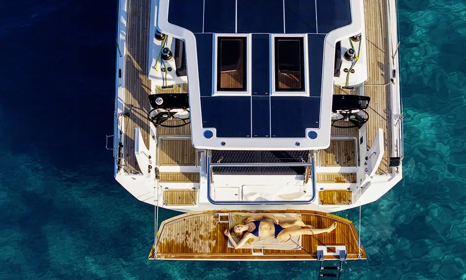 The bathing platform is a sizeable space and provides access to the water much like you’d find in the finest pool houses. To enhance the practicality of this space, a double access to the cockpit has been designed to allow for pleasant ease of movement.