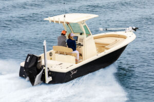 Beyond the stunning lines, ample fishing features and creature comforts Scout is known for, the new 251 XSS also showcases Scout’s revolutionary T-top/glass enclosure, which was awarded a U.S. Design Patent.