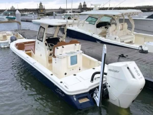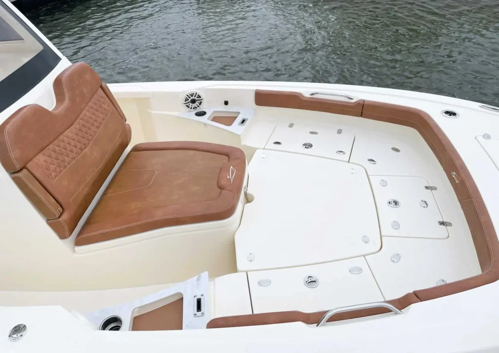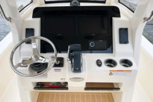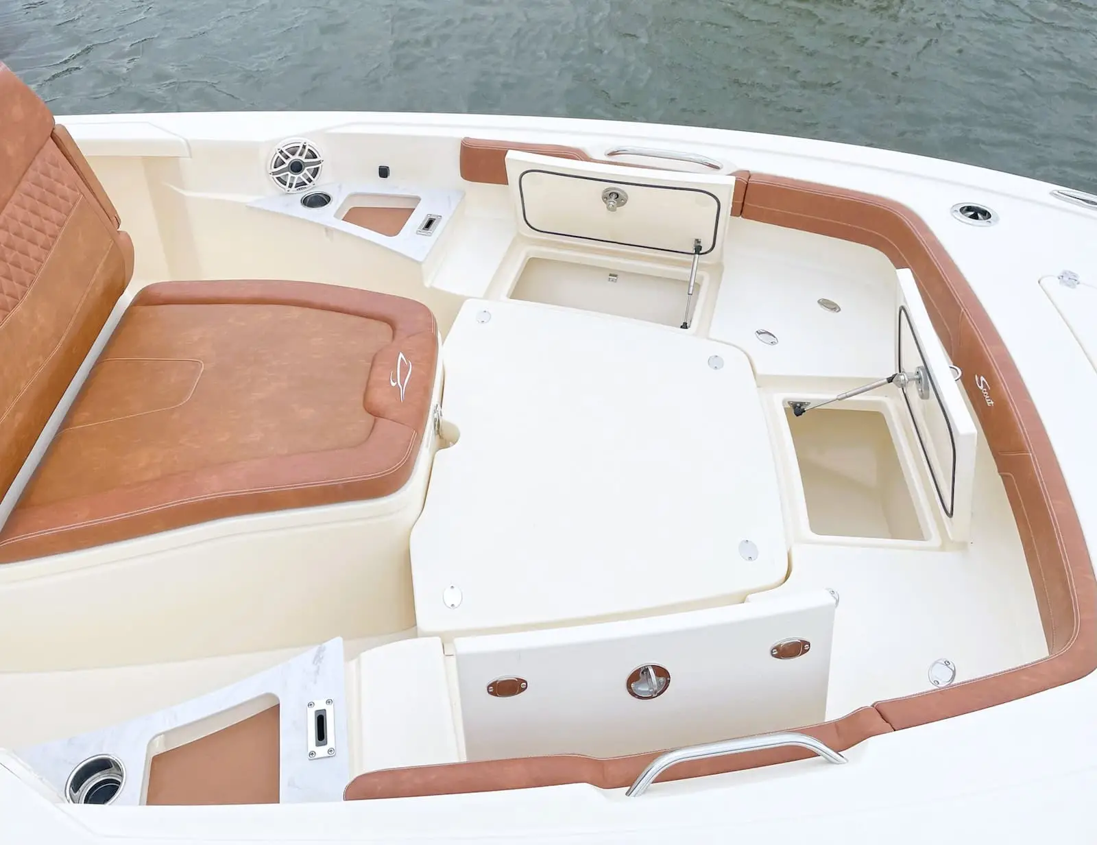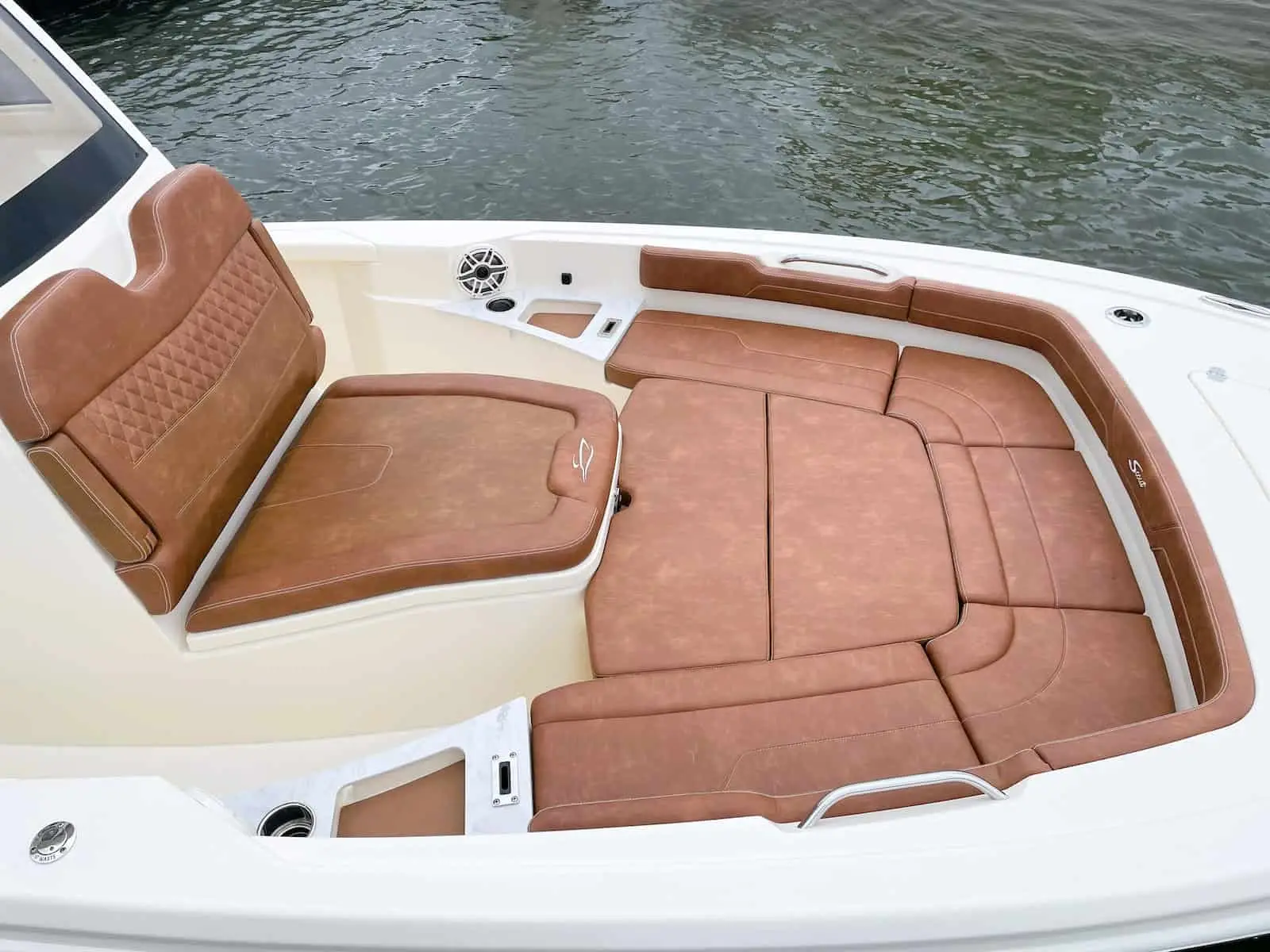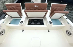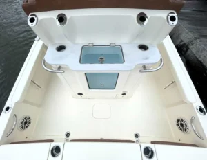 Scout’s new patent-pending Sport Tower upper station is also a notable option on the 261 XSS. The Sport Tower not only provides full controls at the top, but it’s designed to place the driver aft of the helm passengers to improve visibility for all.