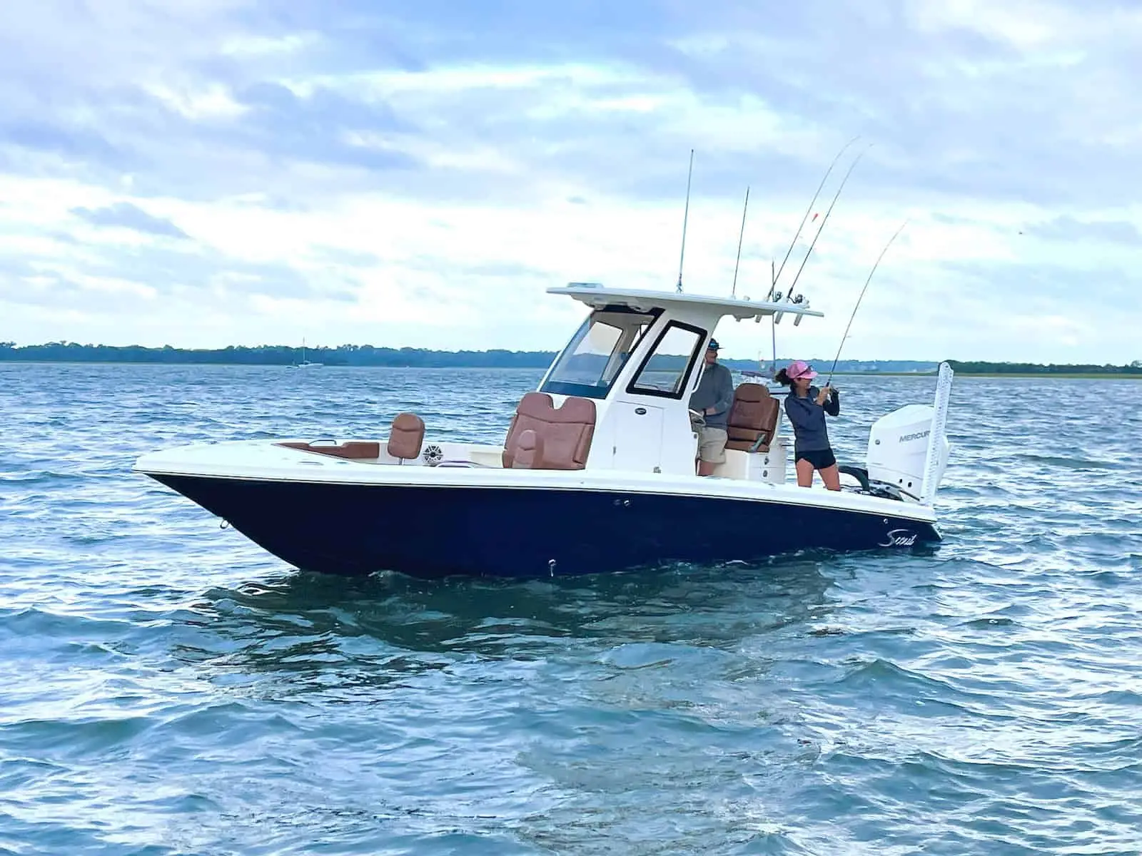The 261 XSS is an inshore/offshore crossover and is loaded with notable features such as the large casting fore and rear deck; port and starboard aerated baitwells; ample rod storage; and a console coffin box. This model combines the luxury of a Scout with all the characteristics of a serious bay boat. Scout’s bay boat collection is known for its aggressive lines, high performance, and all around fishability.
