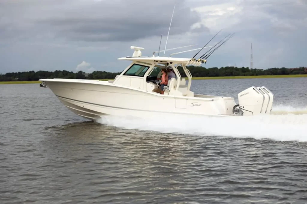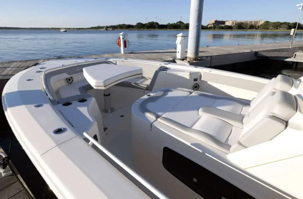 S-Class (luxury models 33’ and up) signifies the upper echelon of our line-up – the highest level of luxury – similar to what you experience with high-end luxury automobiles. The 357 LXF is meticulously crafted with cutting-edge Epoxy Infusion Construction and the highest-performing dual Scout Stepped Hull Technology, while simultaneously pairing it with the finest sophisticated blend of appointments and technologies. Our S-Class denotes the most superior model for our customers.