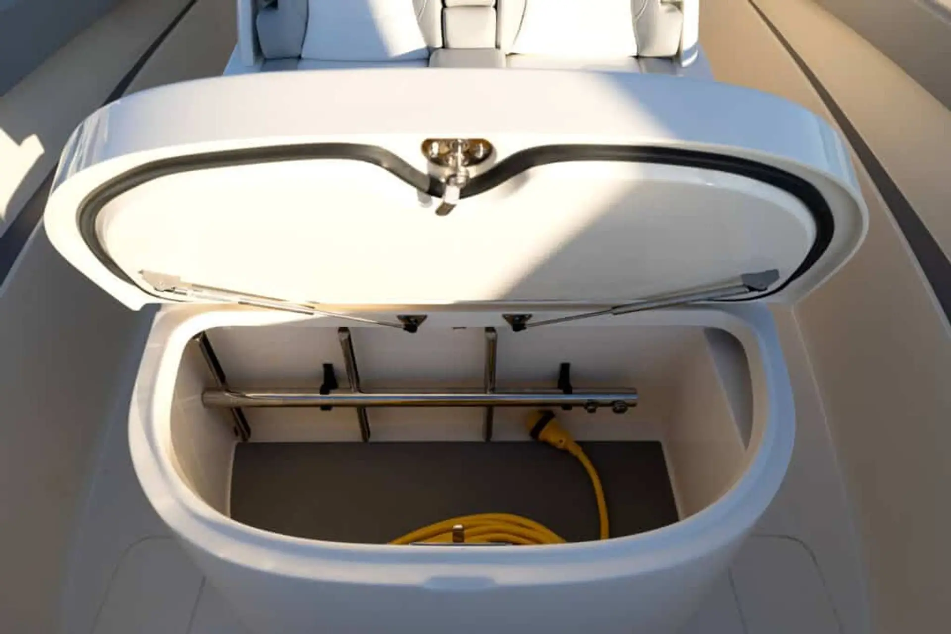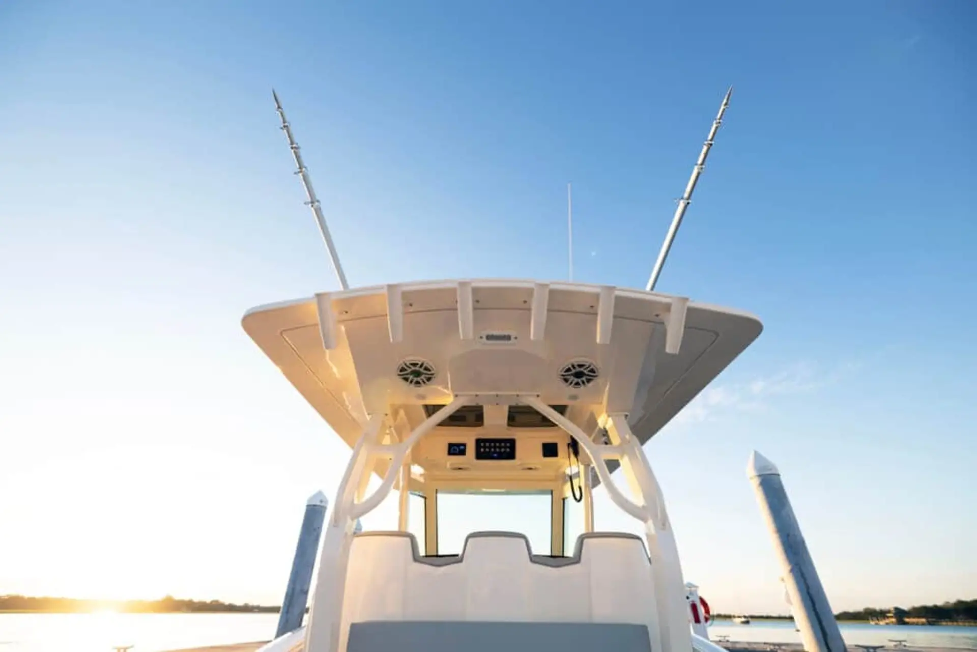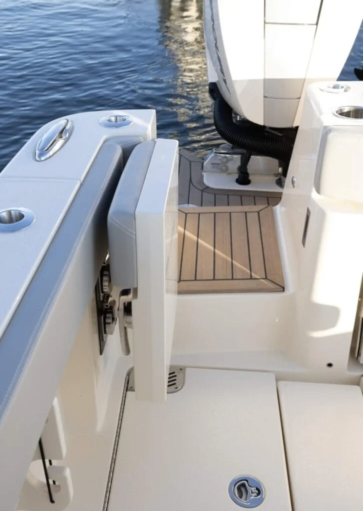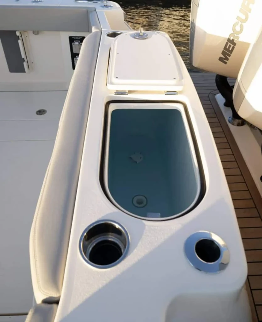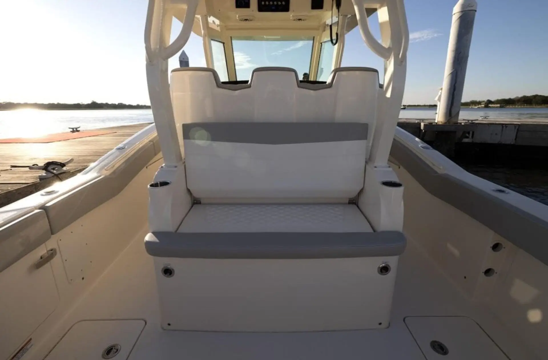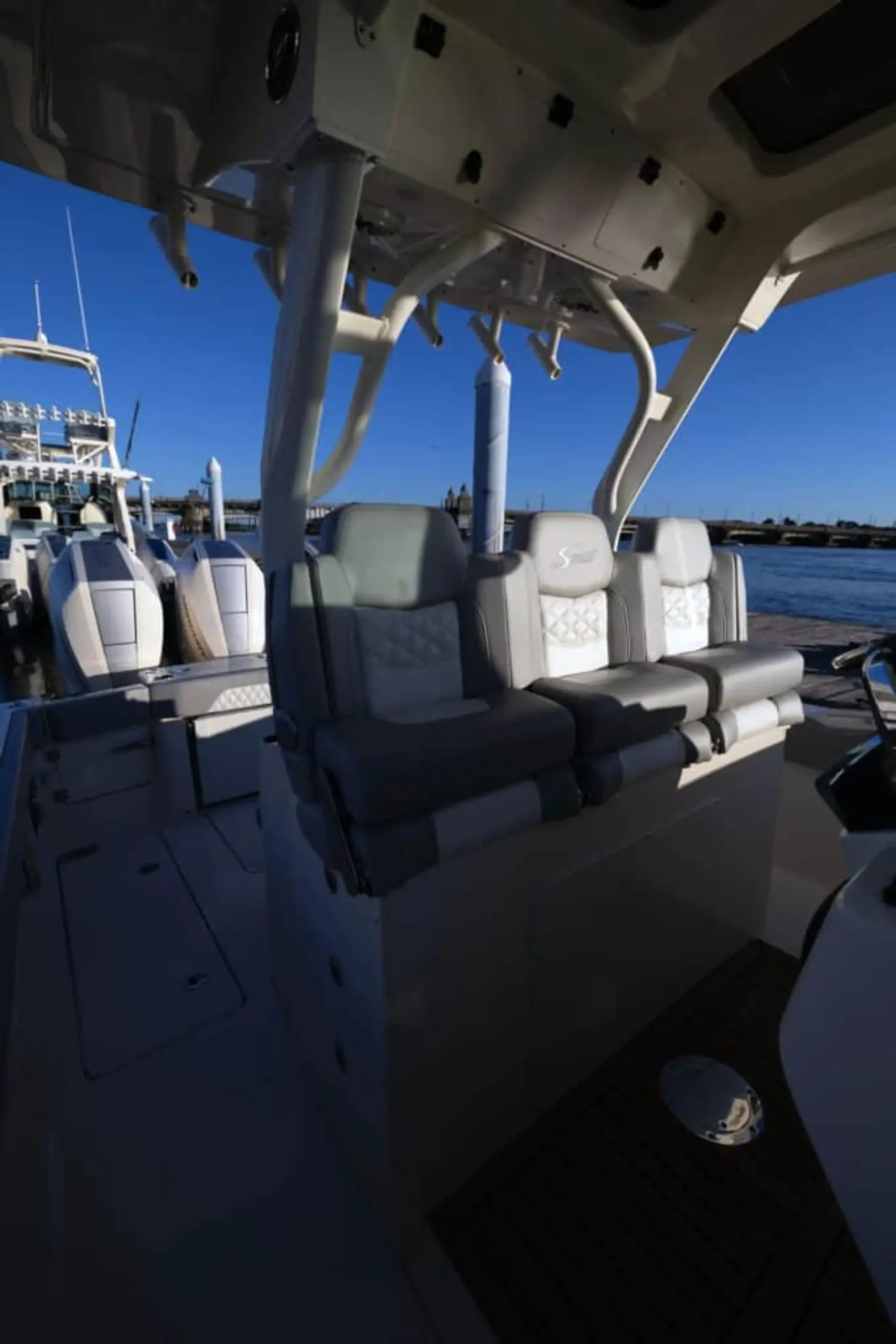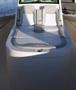 The 357 LXF S-Class will surpass all of your expectations. When you step aboard and experience the extended space designed into this model, coupled with the performance, innovation, and luxury that our models are known for, it’s clear this is a phenomenal and highly functional work of art. Enjoy a fully-walkable swim platform with a starboard side walk-thru and Esthec, Armstrong swim platform ladder, 60 gallon transom fishbox/storage, raw & fresh water washdown with a 25 gal tank, 50 amp battery charger, key fob remote controlled lights, three captain’s helm chairs with heated seats and individual flip-up bolsters, and an electrically actuated bow table/conversion sun lounge with Esthec just to name a few of the standard features. There’s also an anchor camera in the bow, aft facing bench seat that converts into a raised prep table, and much more. Notable options include a Seakeeper 3 stabilized gyro that includes solar panels on the hardtop, an additional 50 amp charger and two additional batteries, retractable rocket launchers, bow pop up lights, an electric fiberglass cockpit sun shade, A/C, and a wireless active mount phone charger.