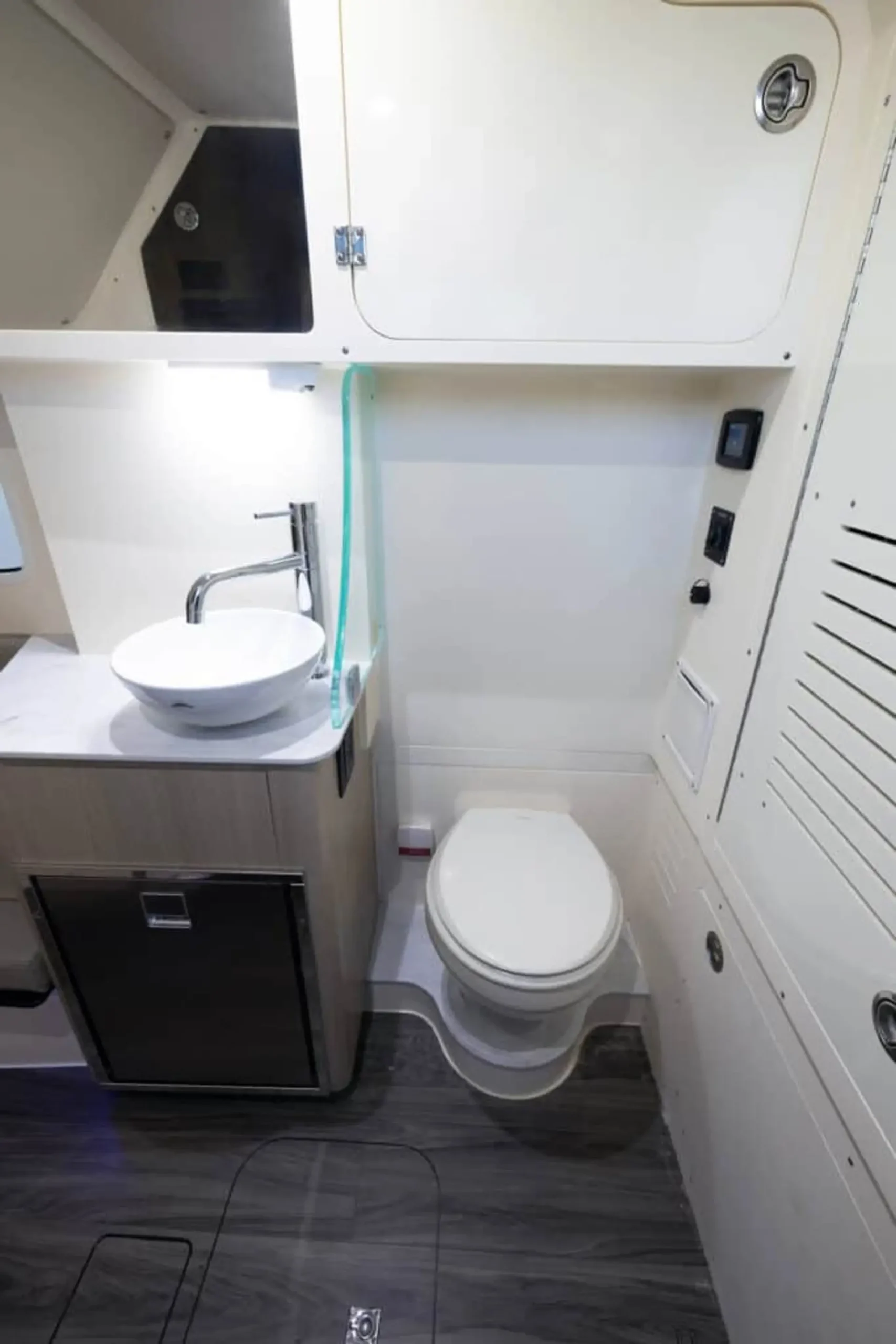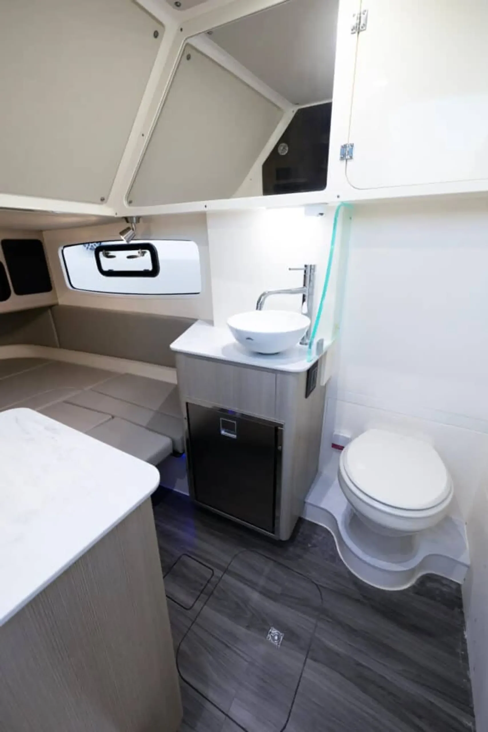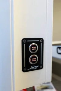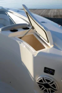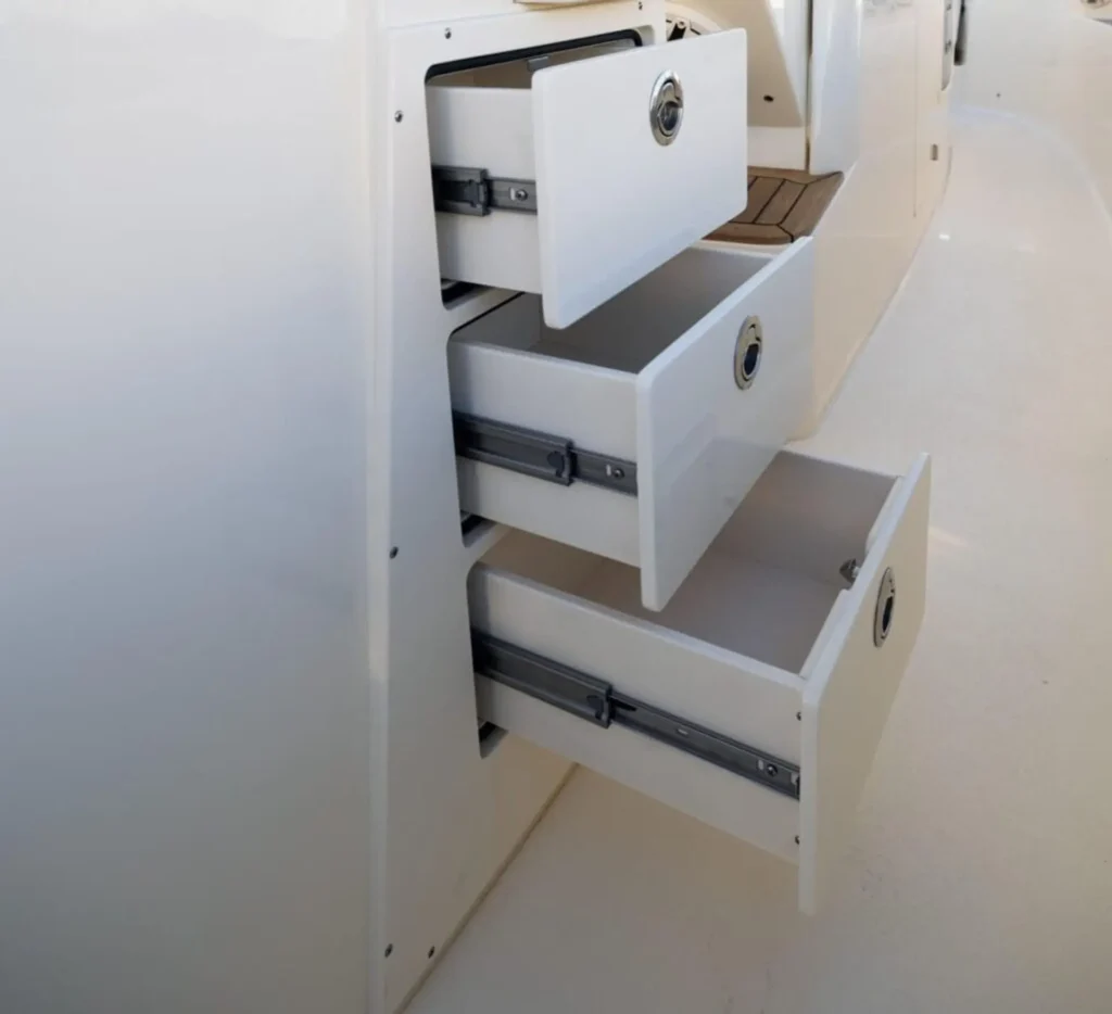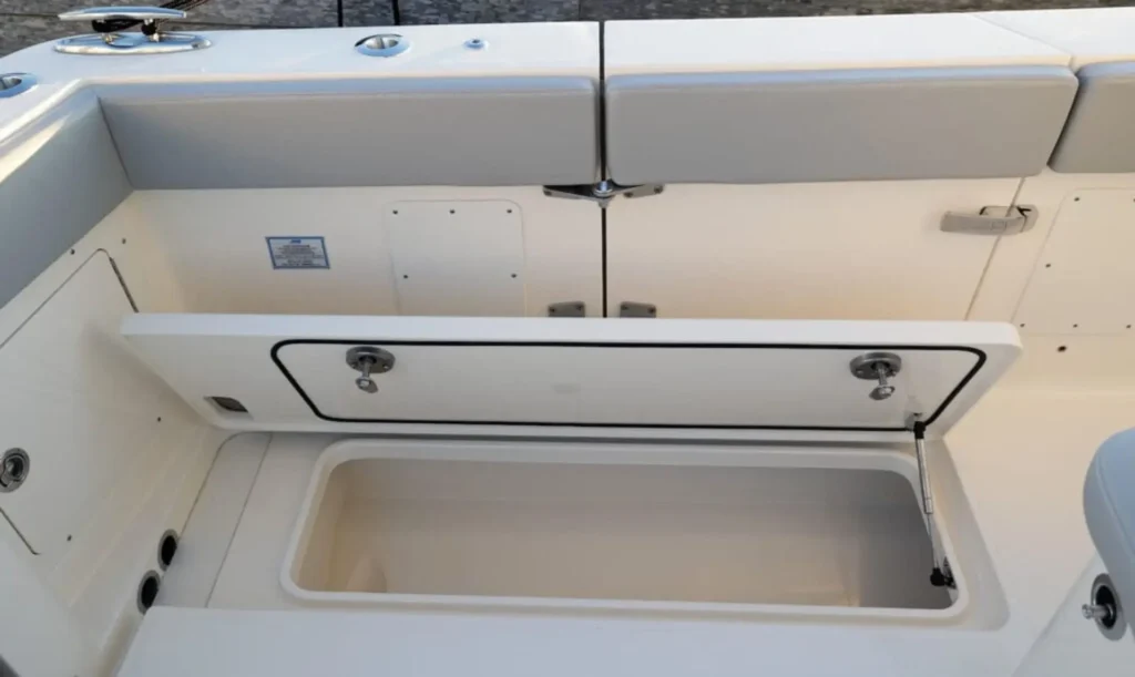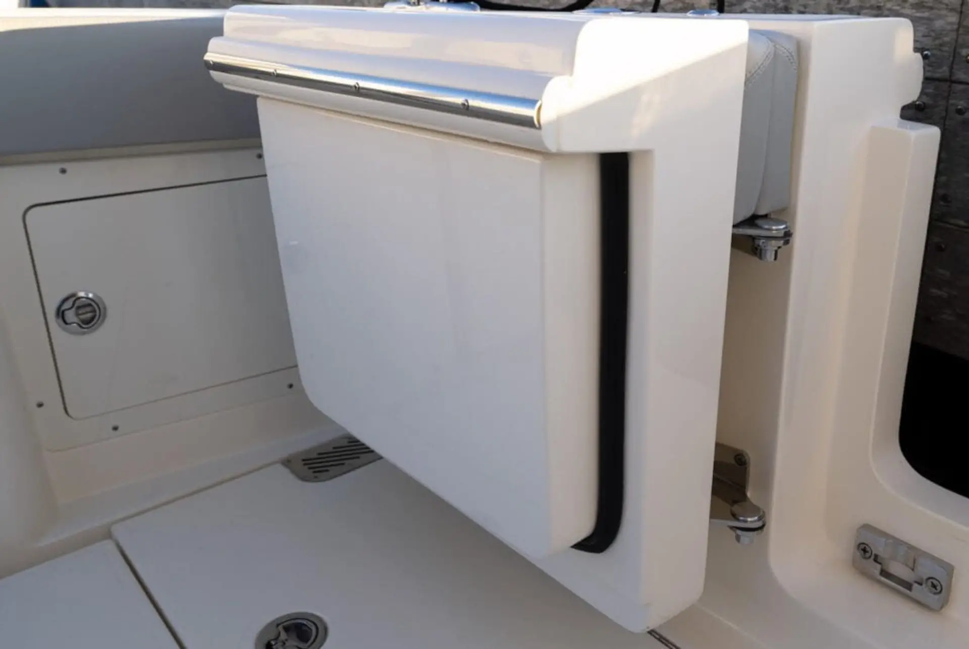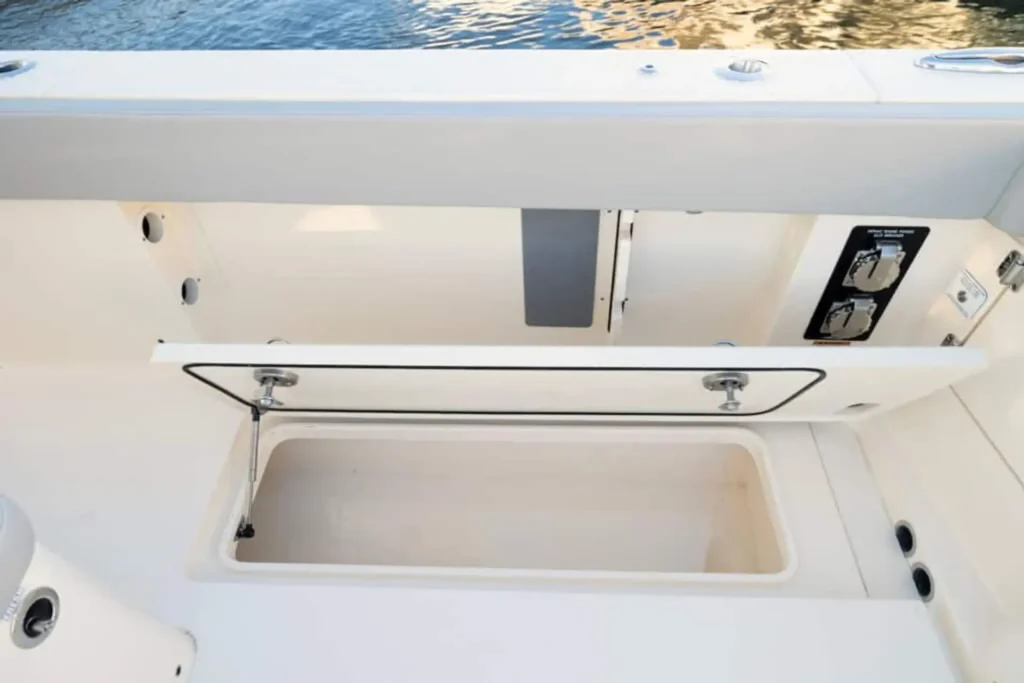 The 357 LXF S-Class will surpass all of your expectations. When you step aboard and experience the extended space designed into this model, coupled with the performance, innovation, and luxury that our models are known for, it’s clear this is a phenomenal and highly functional work of art. Enjoy a fully-walkable swim platform with a starboard side walk-thru and Esthec, Armstrong swim platform ladder, 60 gallon transom fishbox/storage, raw & fresh water washdown with a 25 gal tank, 50 amp battery charger, key fob remote controlled lights, three captain’s helm chairs with heated seats and individual flip-up bolsters, and an electrically actuated bow table/conversion sun lounge with Esthec just to name a few of the standard features. There’s also an anchor camera in the bow, aft facing bench seat that converts into a raised prep table, and much more. Notable options include a Seakeeper 3 stabilized gyro that includes solar panels on the hardtop, an additional 50 amp charger and two additional batteries, retractable rocket launchers, bow pop up lights, an electric fiberglass cockpit sun shade, A/C, and a wireless active mount phone charger.