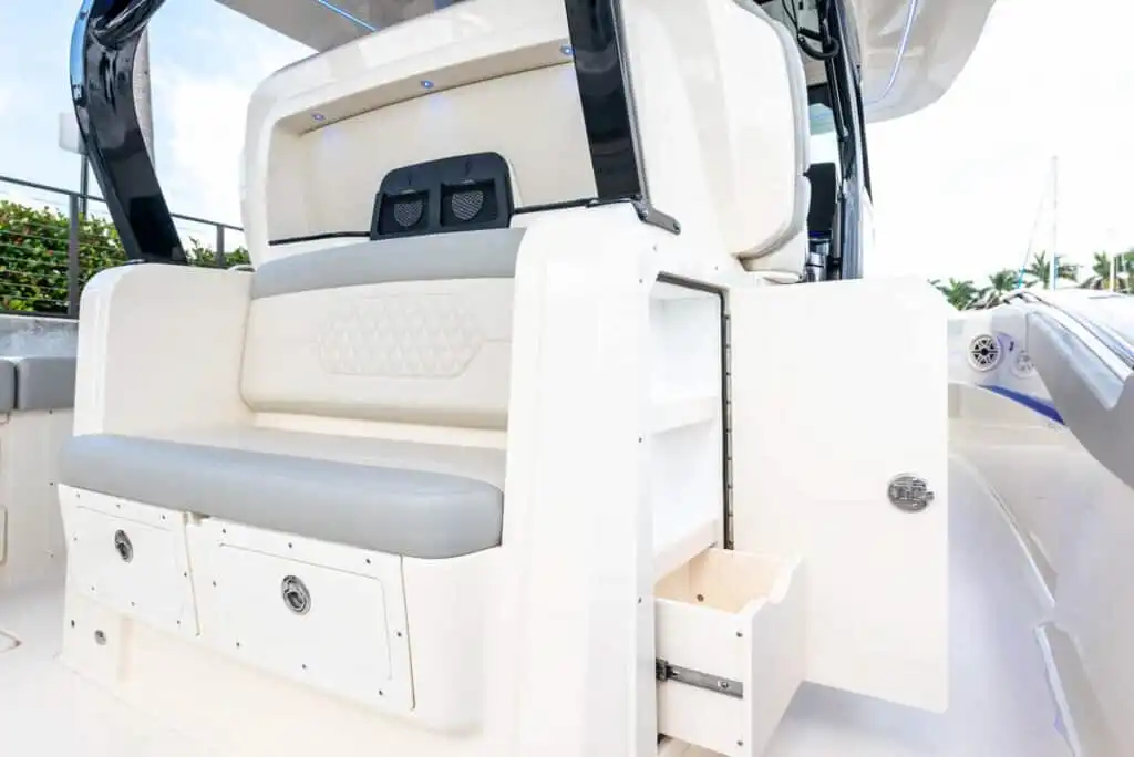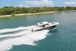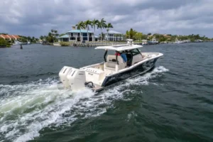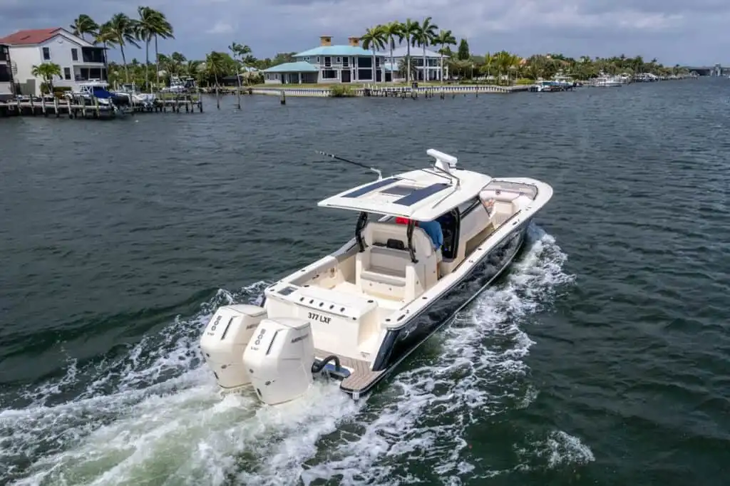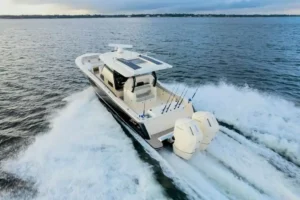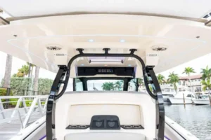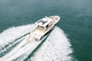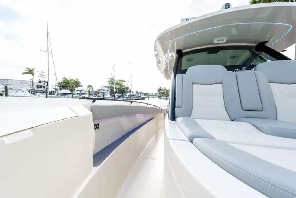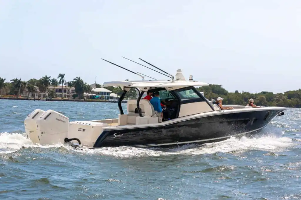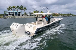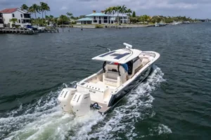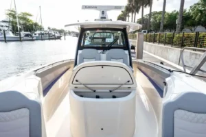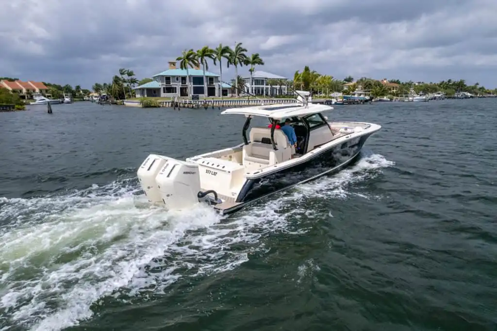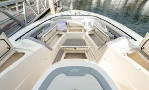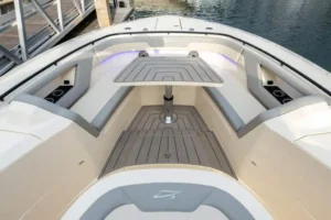 S-Class (luxury models 33’ and up) signifies the upper echelon of our line-up – the highest level of luxury – similar to what you experience with high-end luxury automobiles. The 377 LXF is meticulously crafted with cutting-edge Carbon Epoxy Construction (Carbon Fiber/E-Glass is the main material used in the Epoxy Infusion process) and the highest-performing dual Scout Stepped Hull Technology, while simultaneously pairing it with the finest sophisticated blend of appointments and technologies. Our S-Class denotes the most superior model for our customers.