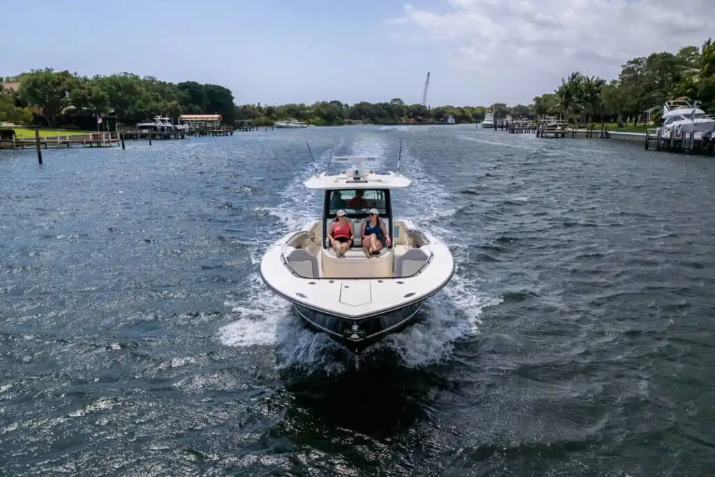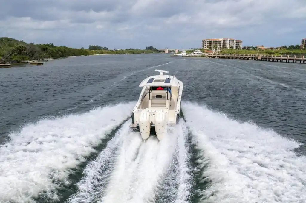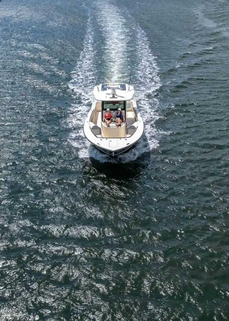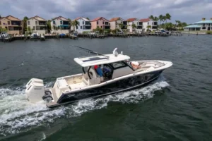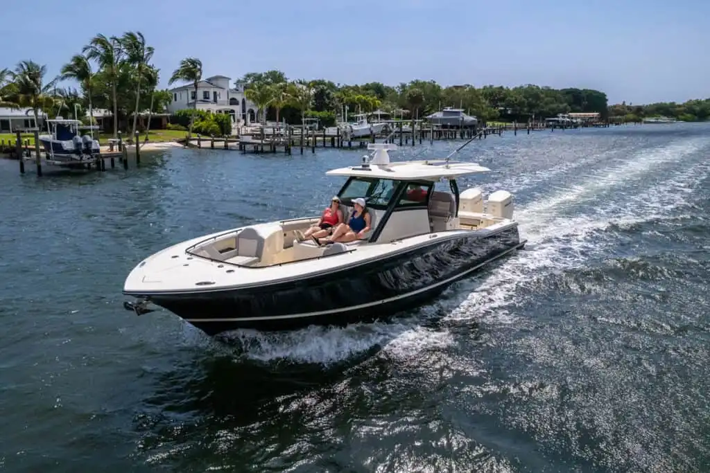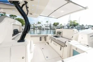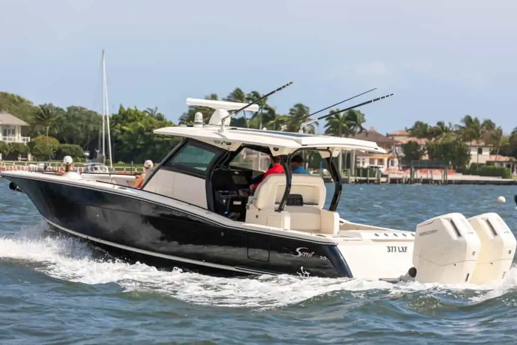 S-Class (luxury models 33’ and up) signifies the upper echelon of our line-up – the highest level of luxury – similar to what you experience with high-end luxury automobiles. The 377 LXF is meticulously crafted with cutting-edge Carbon Epoxy Construction (Carbon Fiber/E-Glass is the main material used in the Epoxy Infusion process) and the highest-performing dual Scout Stepped Hull Technology, while simultaneously pairing it with the finest sophisticated blend of appointments and technologies. Our S-Class denotes the most superior model for our customers.