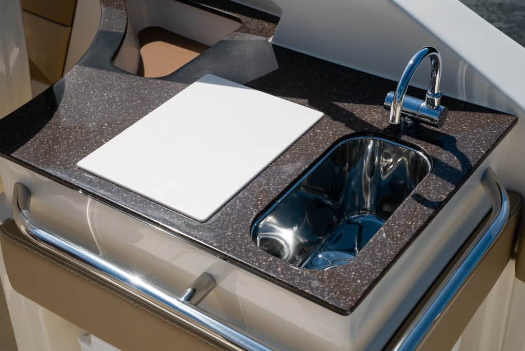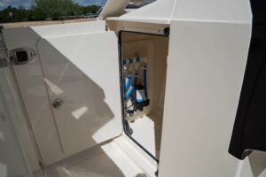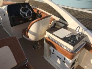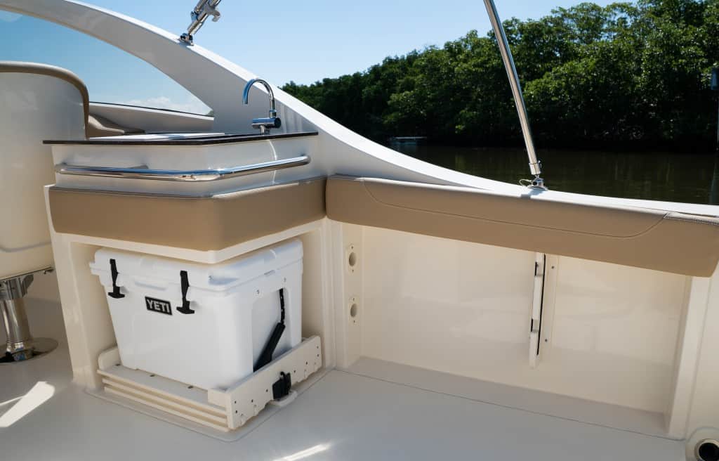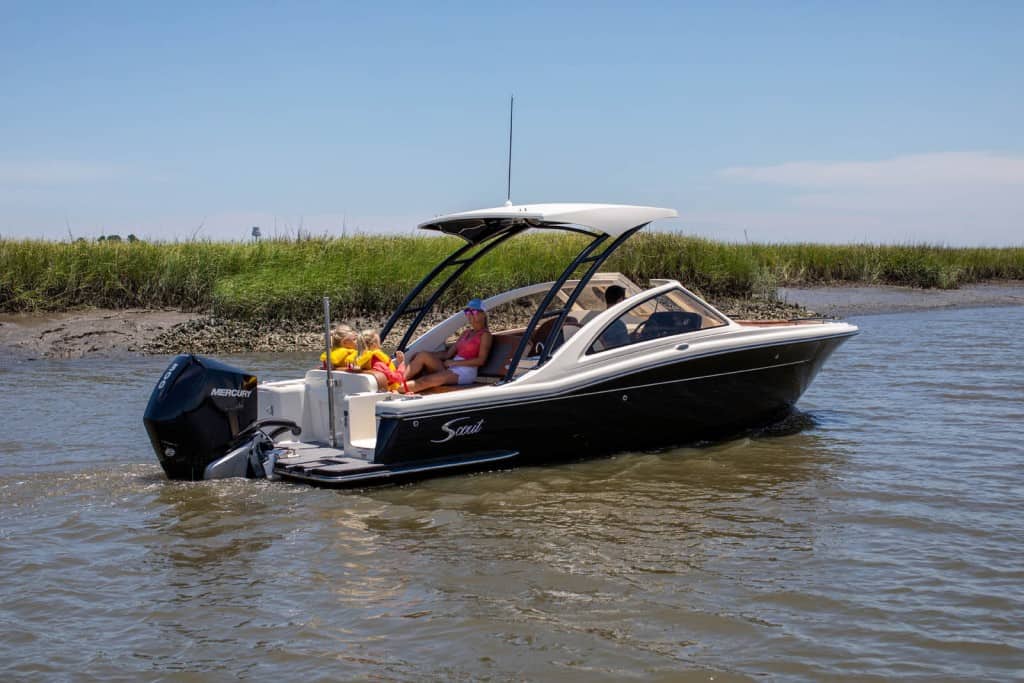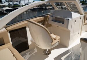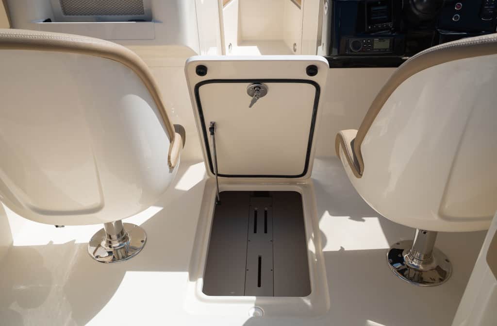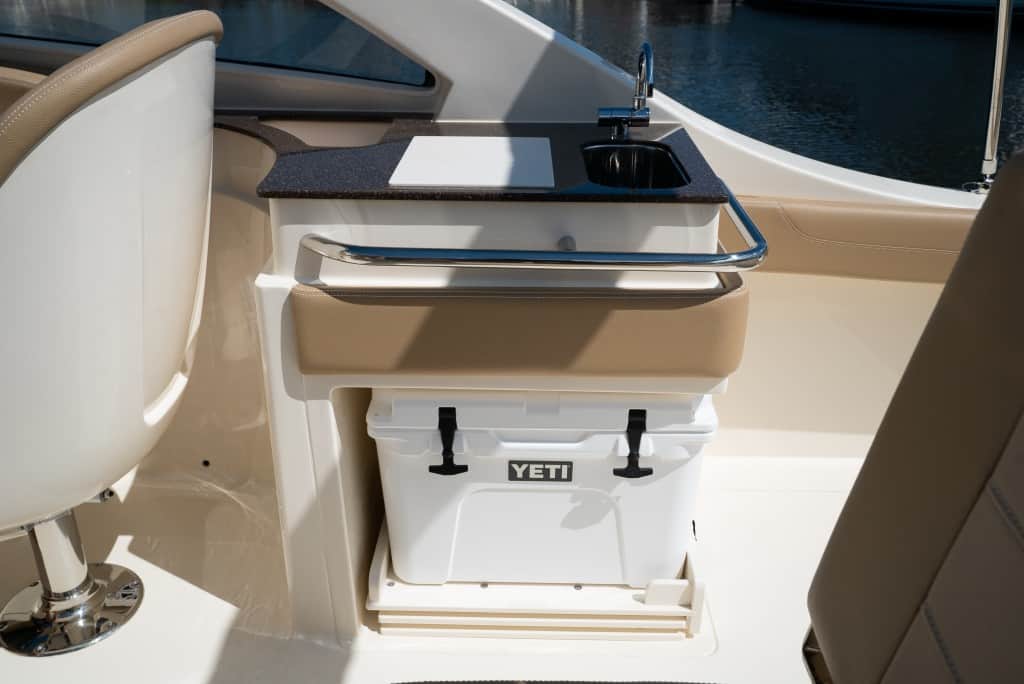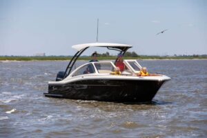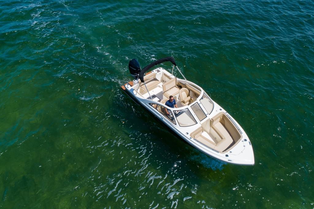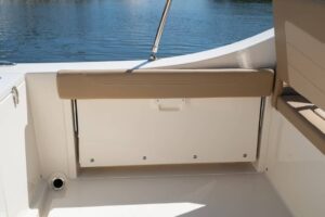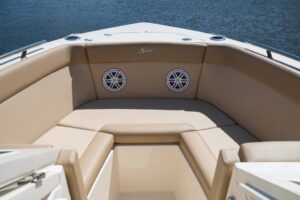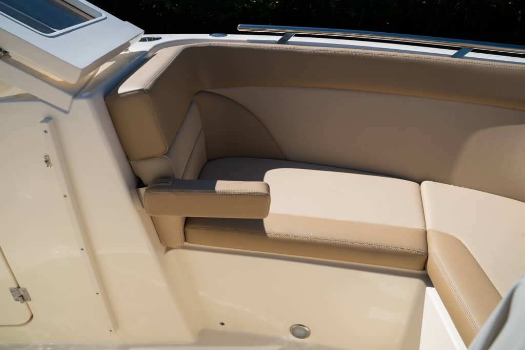 Our 240 Dorado showcases our NuV3 fuel efficient hull technology which affords you tremendous savings throughout your ownership. Loaded with family-friendly fishing features, this model comes standard with full transom swim platforms with synthetic teak foam pad and ladder, a port side fold down seat with folding table, fully cushioned bow seating and a stern seat in the transom among other features. An optional fiberglass hardtop is also available.