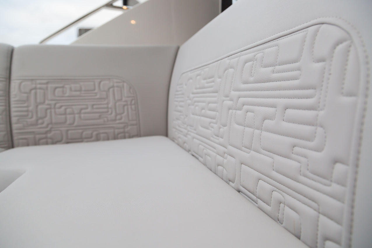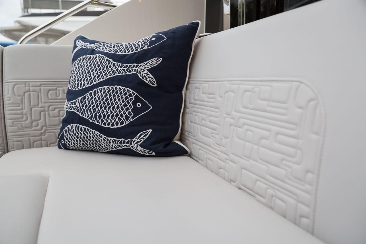 Seating, Pivoting Helm (2) w/Armrest, Reclining Backrests, Teak Footrests, Heavy-Duty Adjustable Pedestals