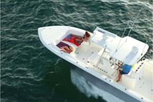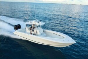 The SeaVee 340 Series has been the leader in its class for over a decade. This versatile design can accommodate twin or triple outboards ranging from 600 – 1200 hp. Offered in two distinct configurations, the 340 can be setup as a hardcore tournament fishing boat, or a family friendly cruiser complete with custom seating, toilet and shower facilities.