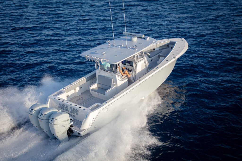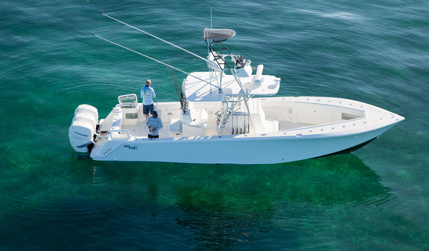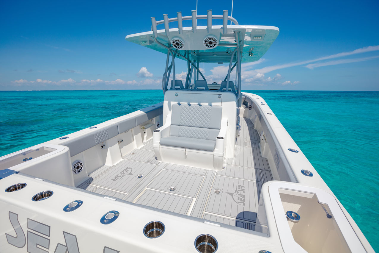 The 370Z represents the next level of thinking for design when it comes to fishing boats in excess of 36 feet. More is possible. And the 370Z leads the way. Masterful engineering has resulted in a light cored hull featuring twin steps for maximum speed and efficiency, plus 20% more deck space and storage capacity than any boat in its class. If multi-day trips to distant destinations are in your future, the 370Z should be on your list.