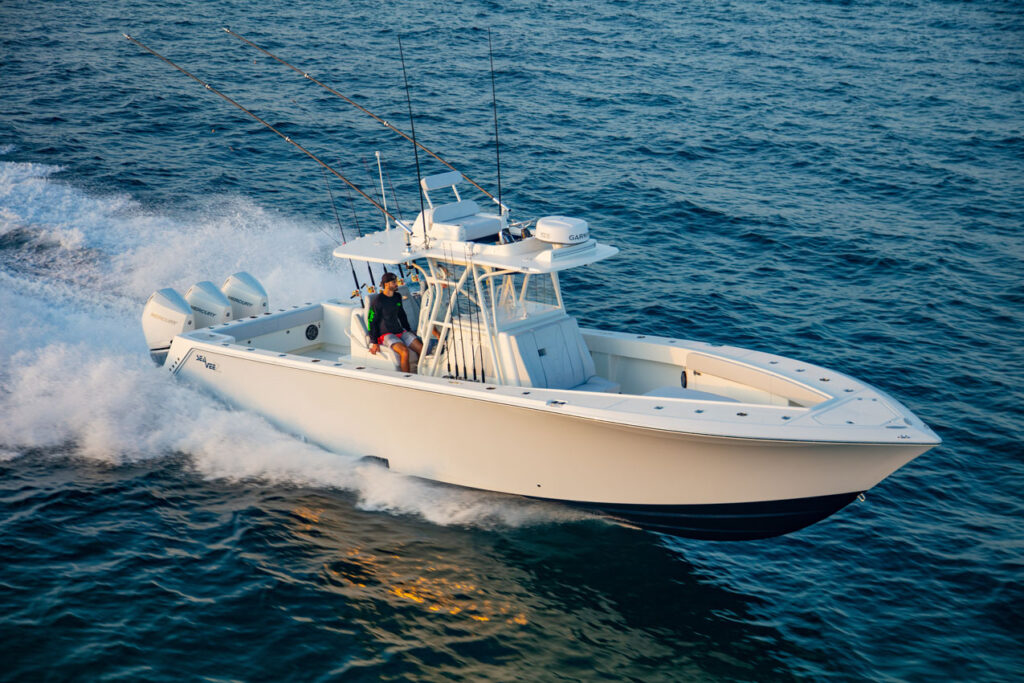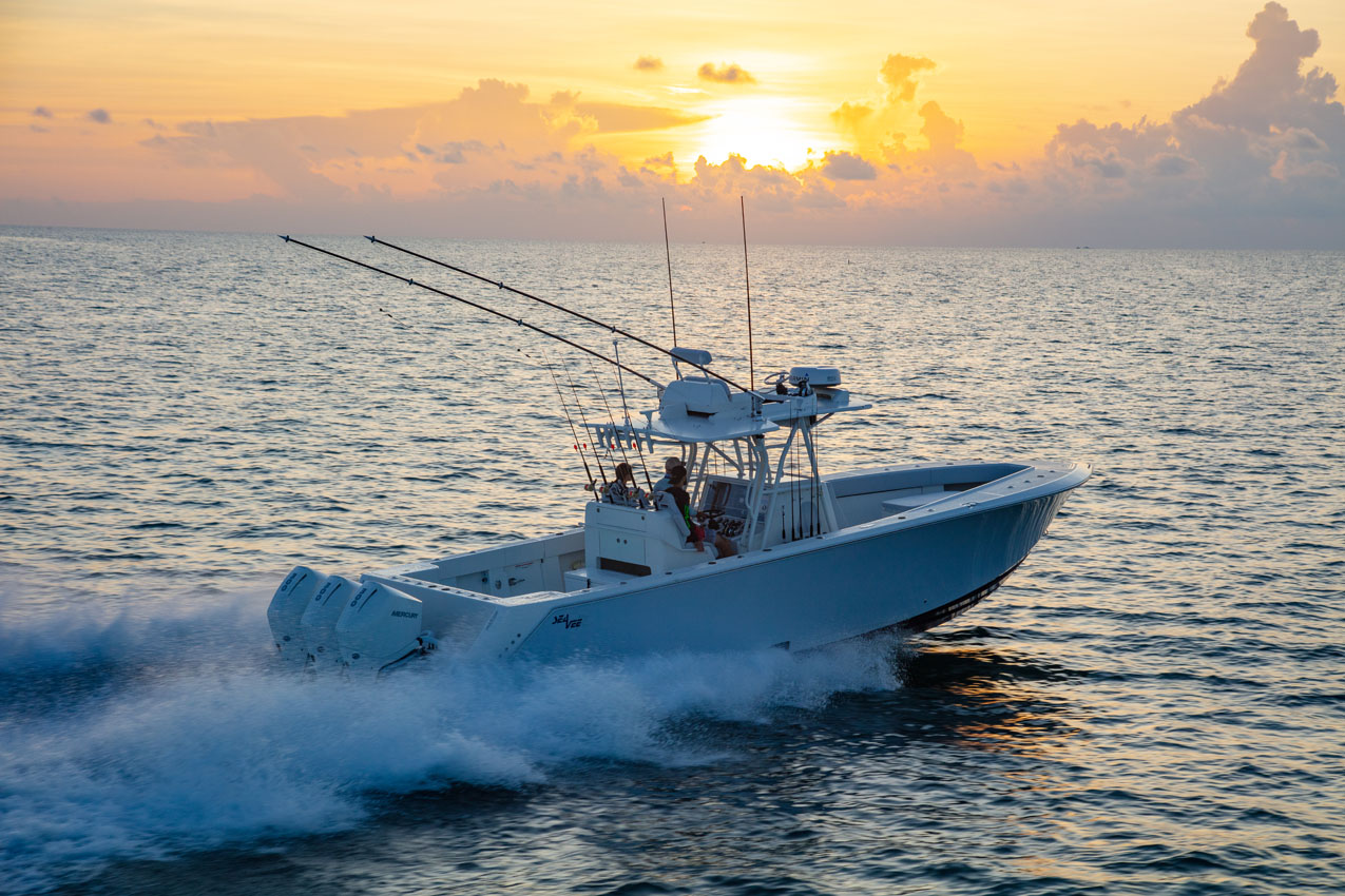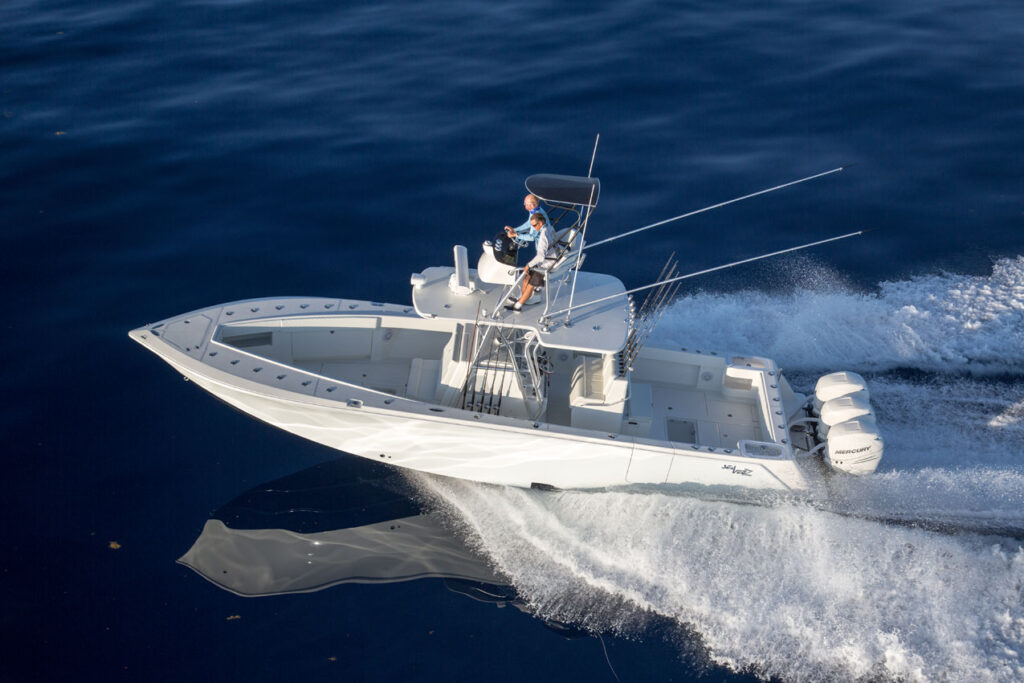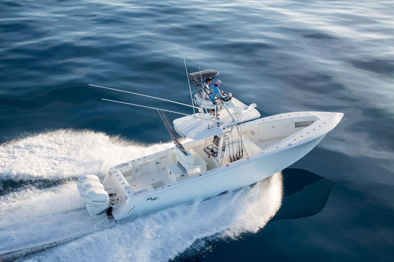 The 370Z represents the next level of thinking for design when it comes to fishing boats in excess of 36 feet. More is possible. And the 370Z leads the way. Masterful engineering has resulted in a light cored hull featuring twin steps for maximum speed and efficiency, plus 20% more deck space and storage capacity than any boat in its class. If multi-day trips to distant destinations are in your future, the 370Z should be on your list.