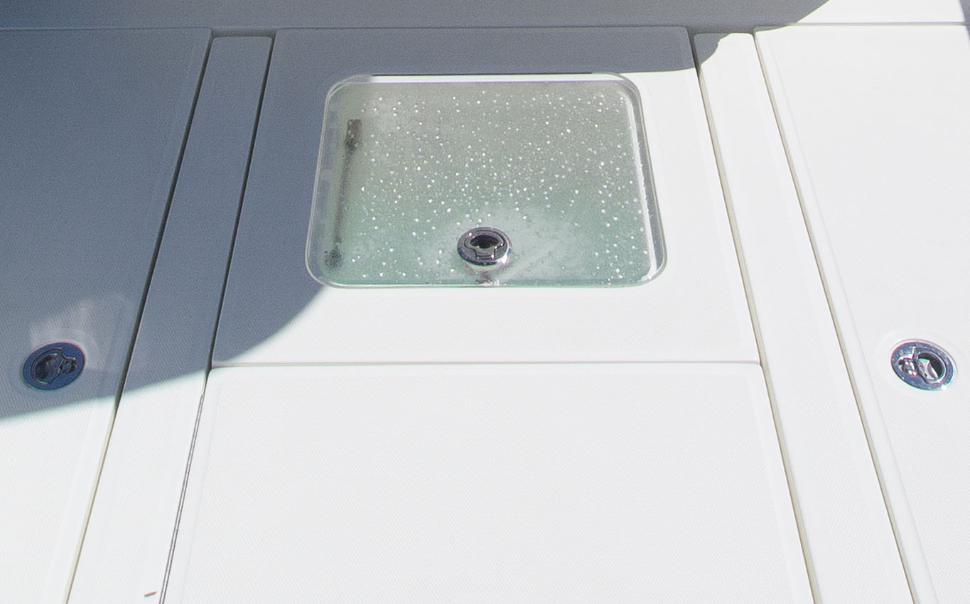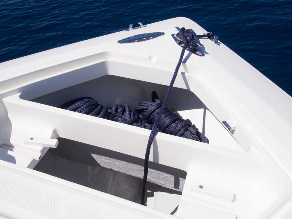 - Dual tilt out forward storage areas below gunwales or option dual 50” retractable bench seats